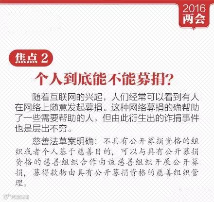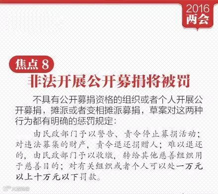 慈善法草案已提请十二届全国人大四次会议审议:①依法登记或认定满二年的慈善组织,可申请公开募捐资格。②摊派募捐被明令禁止;③捐赠财产用于慈善活动,享受税收优惠。④不具有公开募捐资格的个人开展公开募捐,或被罚1万元至10万元。更多↓学习!