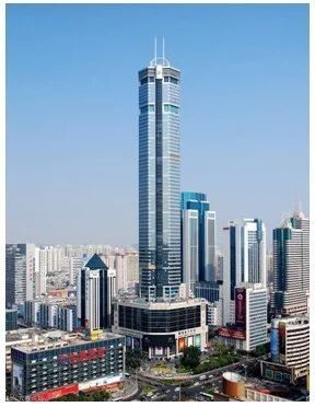 1982 年,深圳电子大厦竣工,为深圳第一座地标性建筑。图为即将竣工的深圳电子大厦,旁边的路即为深南大道