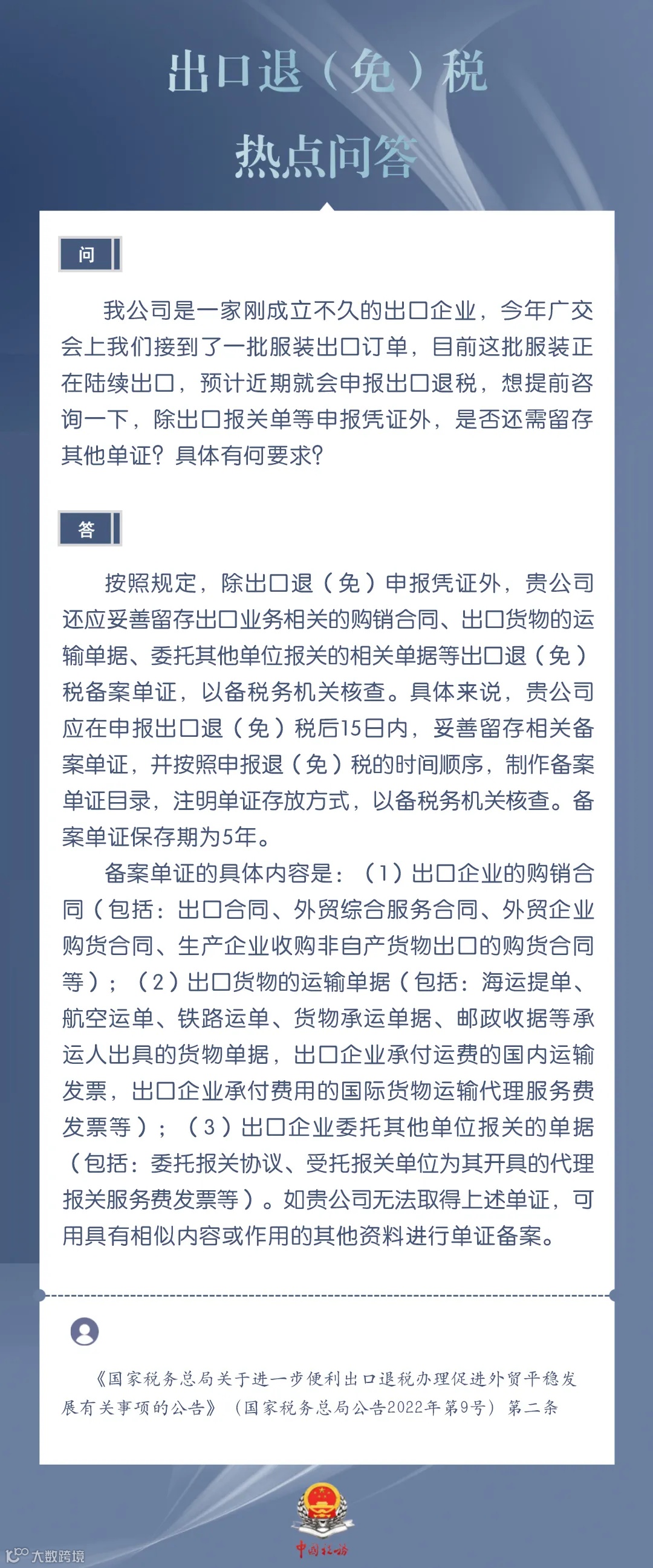 企业申报出口退税,除报关单等申报凭证外,是否还需留存其他单证?具体有何要求?