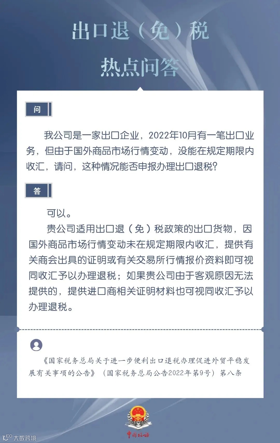 出口企业由于国外商品市场行情变动没能在规定期限内收汇,能否申报办理出口退税?