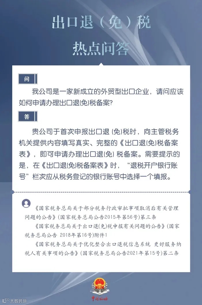 新成立的外贸型出口企业如何申请办理出口退(免)税备案?