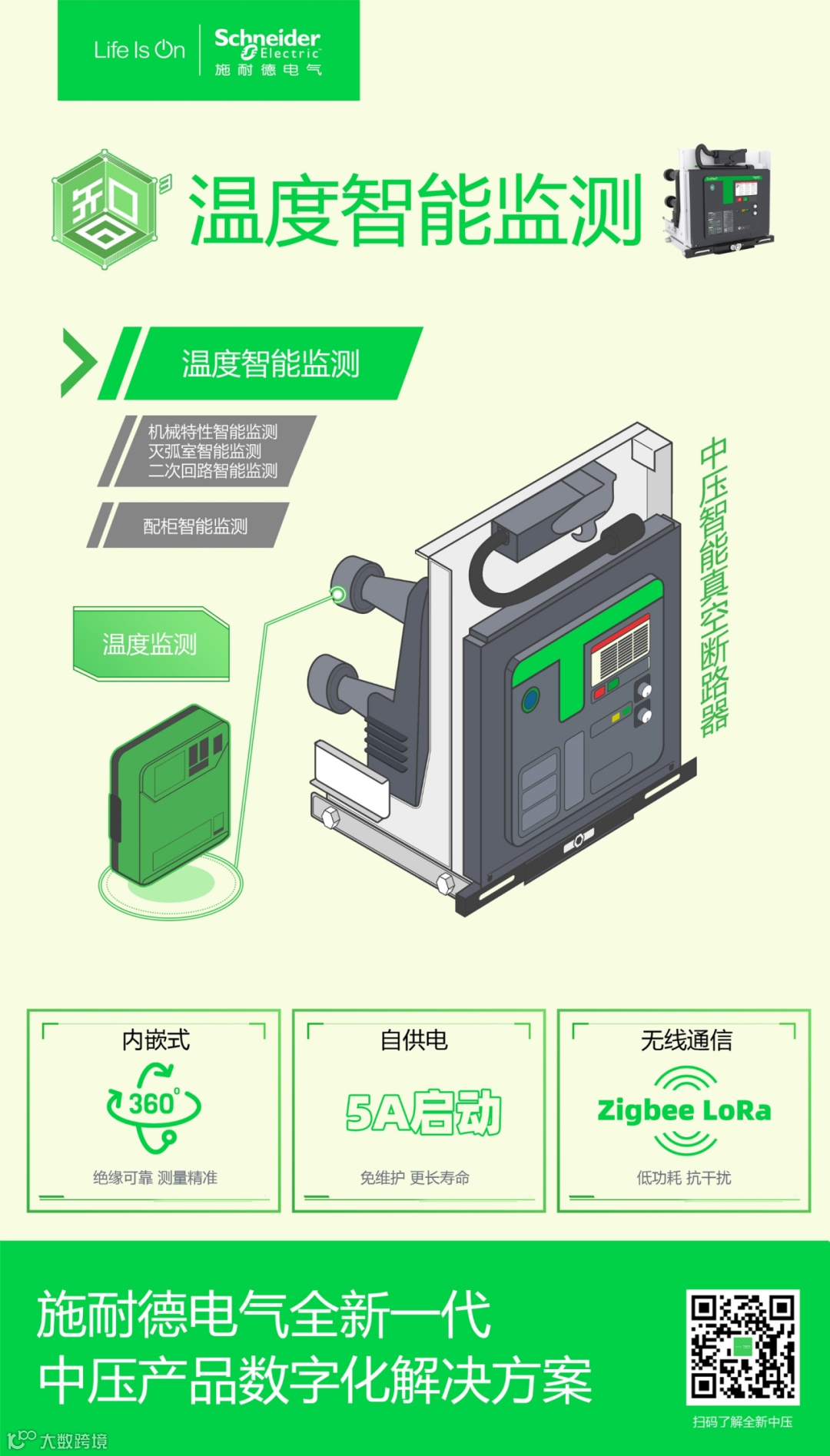 施耐德电气给出的解决方案是:采用无线无源传感器。将传感器内嵌到主回路,通过电磁波进行无线充电取能。