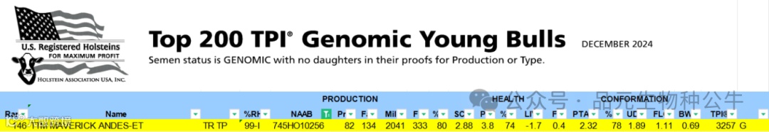 DGG国际基因组种公牛ANDES(745HO10256)连续三次稳居美国红皮书TOP200,完美继承了其父亲DGG国际元老“千佛山”(318HO21269)的遗传稳定性,青出于蓝胜于蓝!