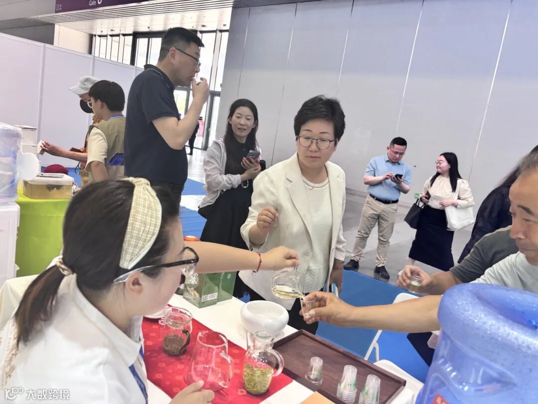 湖北省委宣传部副部长向红林也来到展位前品尝了金苔香恩施玉露。