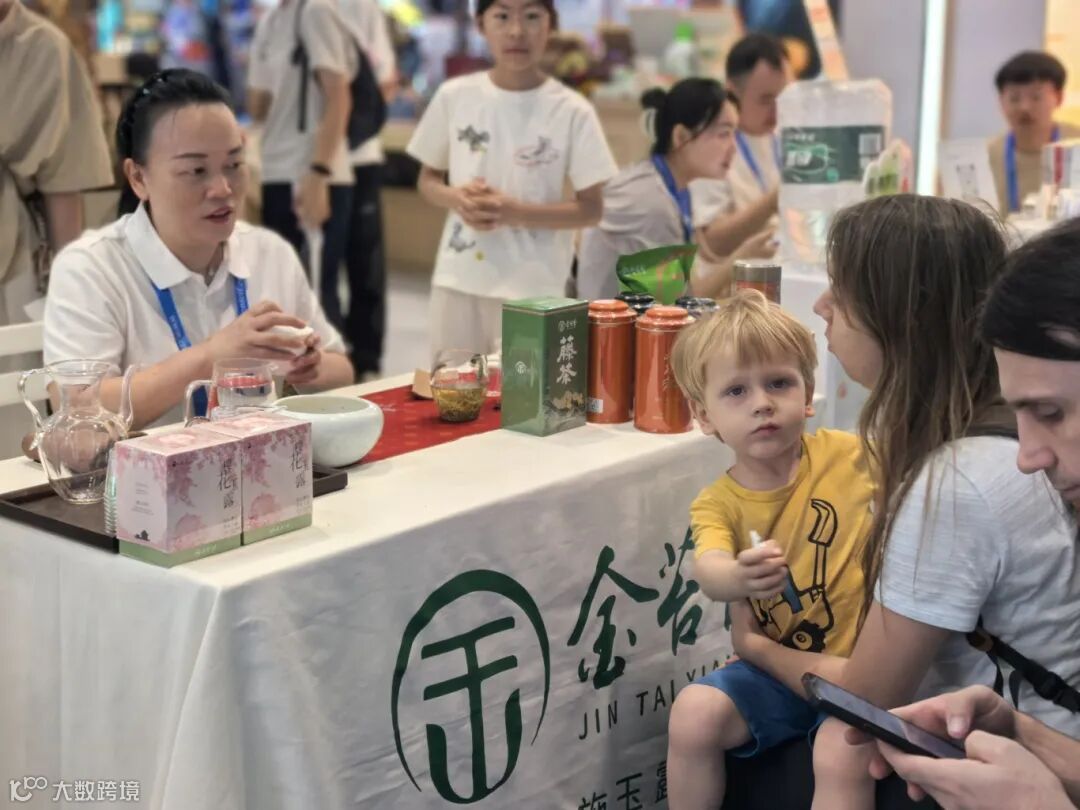 金苔香展位上,一壶玉露茶汤碧绿如玉,蒸青工艺特有的海苔香弥漫全场,引得众人驻足。