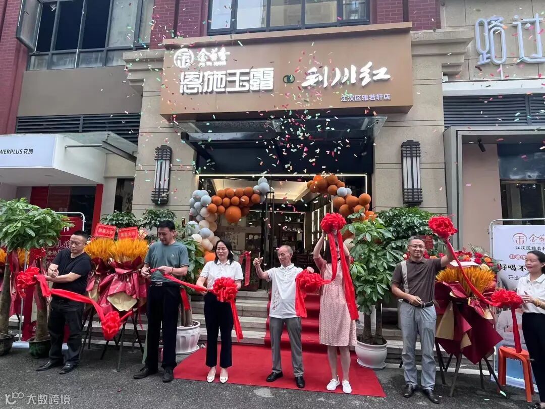 众嘉宾同执运剪,随风飘曳的绸带象征着金苔香武汉加盟店自此顺利起航。