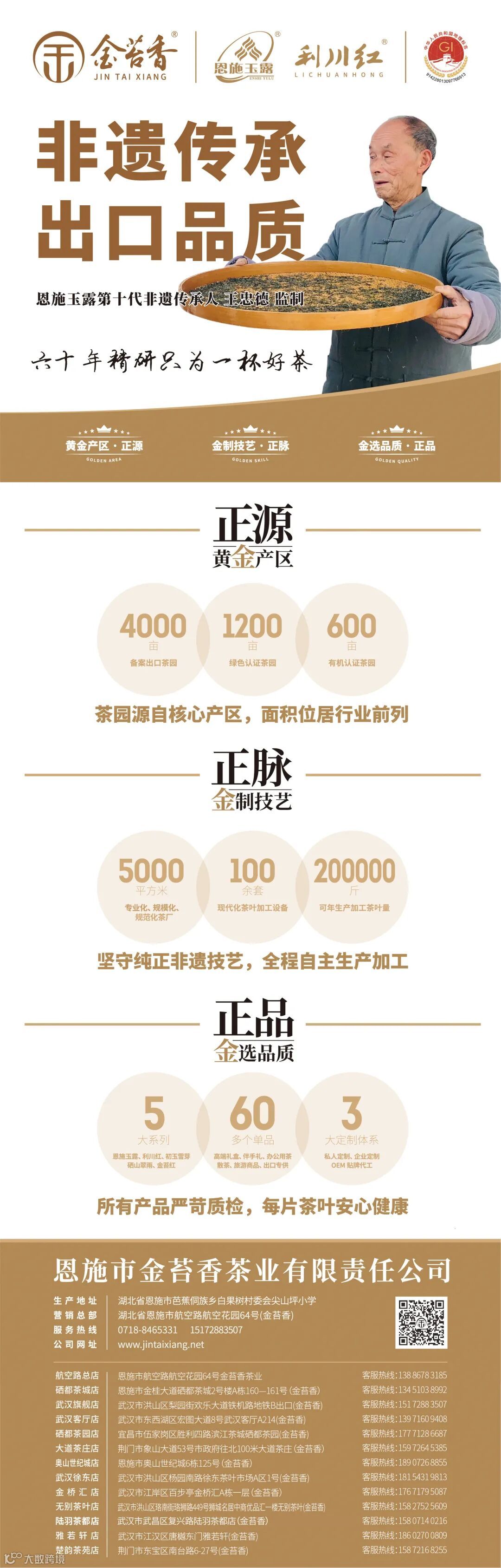 二是产品有保障,金苔香作为第一批恩施玉露备案出口企业和品牌,热爱与敬畏中国茶文化,打造独一无二的“金”字招牌——