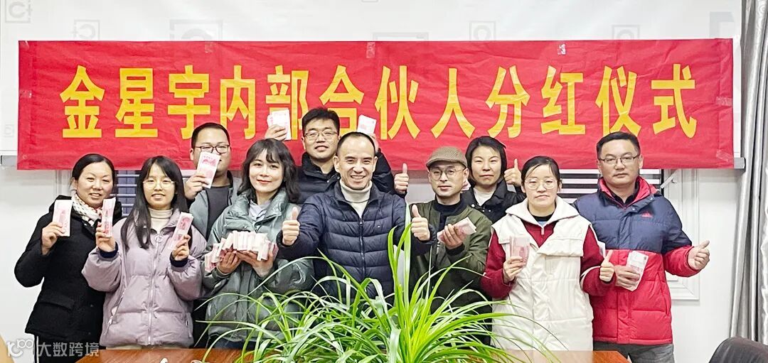 随后,开始了合伙人分红发放仪式,出口业务负责人郭慧给部分优秀合伙人发放了分红现金,并进行合影留念。其中项目负责人郭慧带领团队完成了近5000万元的业绩,喜提分红奖金14余万元!其他众多优秀合伙人根据业绩完成情况,也得到了金额不等的丰厚分红。