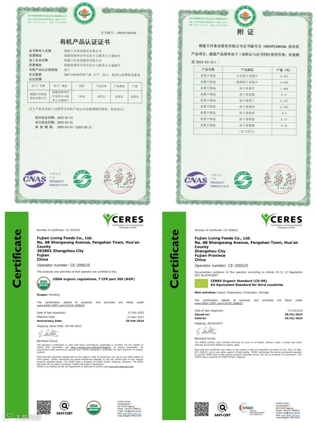 好产品需要好的原料!福建立兴拥有“欧盟有机食品加工和有机香蕉种植基地认证、国内有机植物生产加工认证”。