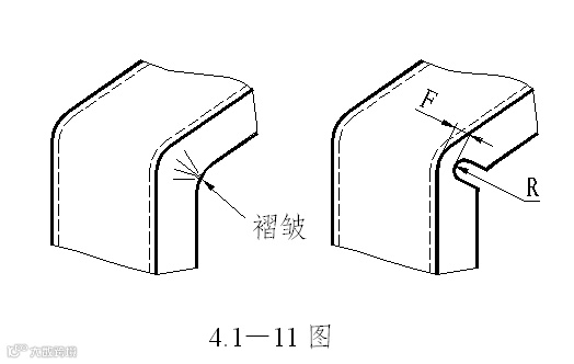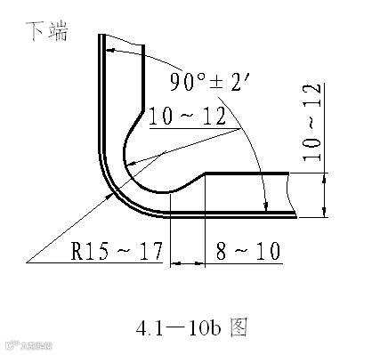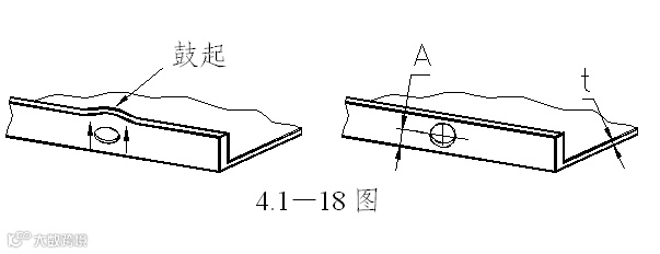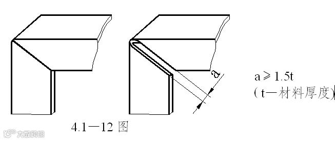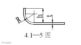 2 弯曲的直边高度不宜过小,否则不易成形足够的弯矩,很难得到形状准确的零件。其值h≥R+2t方可。见4.1—5图。