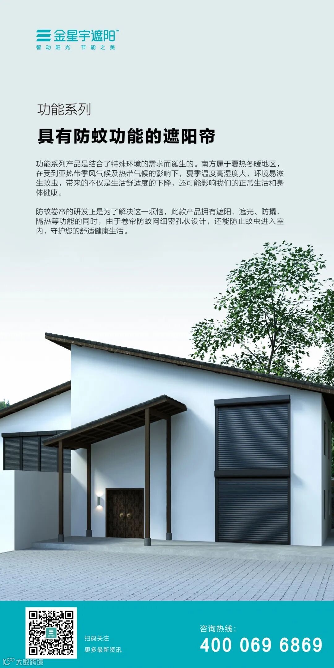 一个合格的遮阳产品,会让舒适生活更上一层楼。让温暖的阳光照进房间,拒绝多余的阳光进入室内是一个老生常谈的话题。选择外遮阳卷帘让你的房子在保证安全的同时,让阳光随你的心情而动。
