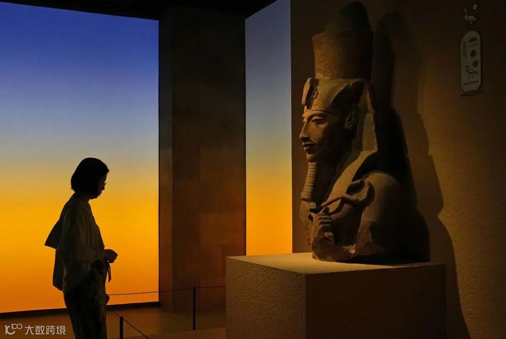 2024年7月17日,预览观众在“图坦卡蒙的时代”展区参观埃赫那吞半身像。当天,“金字塔之巅:古埃及文明大展”在上海博物馆人民广场馆举行开幕仪式。新华社记者刘颖摄