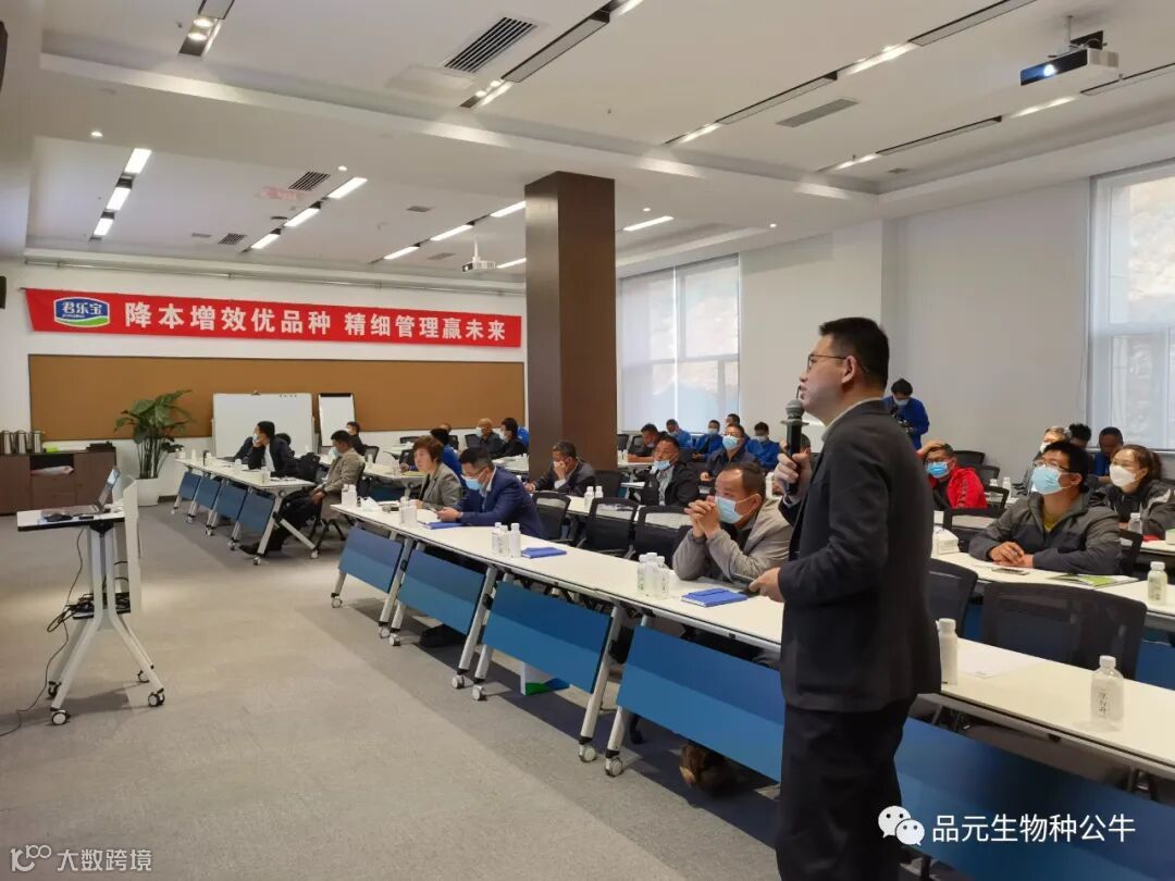 4月9日由君乐宝奶源管理中心与乐源牧业、河北品元生物科技有限公司共同组织的2022君乐宝合作牧场技术交流会(第二期)会议,在君乐宝奶业创新研究院顺利召开,就如何应对受疫情及国际环境影响的原材料飞涨、如何做好营养配方的管控、精细化管理、品种优化等问题进行培训交流。来自石家庄等地的30家社会牧场负责人应邀参会。会议由品元生物副总经理刘茁主持,奶源管理中心总经理王彦生、奶牛科技研究院负责人陈涛等领导列席,奶源管理本部总监王建功、品元生物技术中心总监王聪明、牧场饲养管理部长李可进行专题培训。