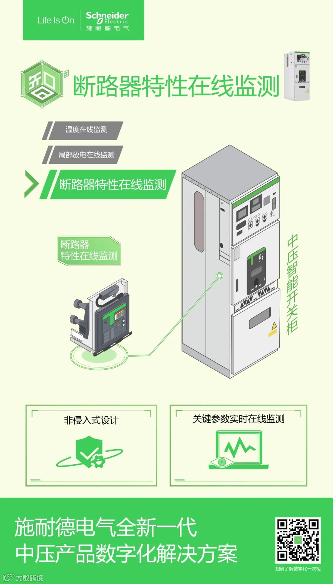 施耐德电气全新一代数字原生中压真空断路器,针对真空灭弧室和操动机构均可实现特性在线监测: