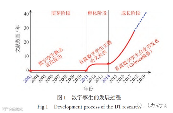 1)数字孪生的萌芽阶段,在本阶段内完成了从2003年的模糊概念至2011年的初步概念的升级;
