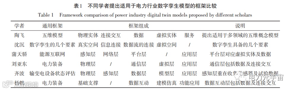 数字孪生电网体系内涵是十分丰富的,能源互联网模型数字孪生框架基于数字孪生五维模型发展而来,理论体系及框架搭建的研究较为深入,数字孪生应用于电力装备也有多位学者开展了框架搭建及理论研究并进行了运用分析。