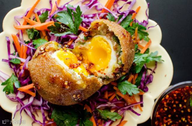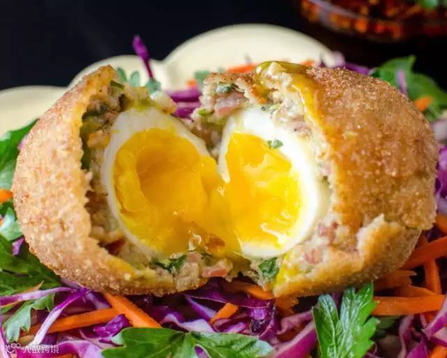 3. 在裹好的鸡蛋外面滚上一层面包屑。
