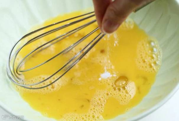 1. 鸡蛋打入一个碗中,加入适量食盐,搅匀。