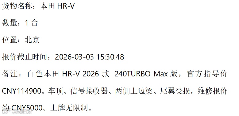 北京&HR-V【1台】 保拍网Salvagesale