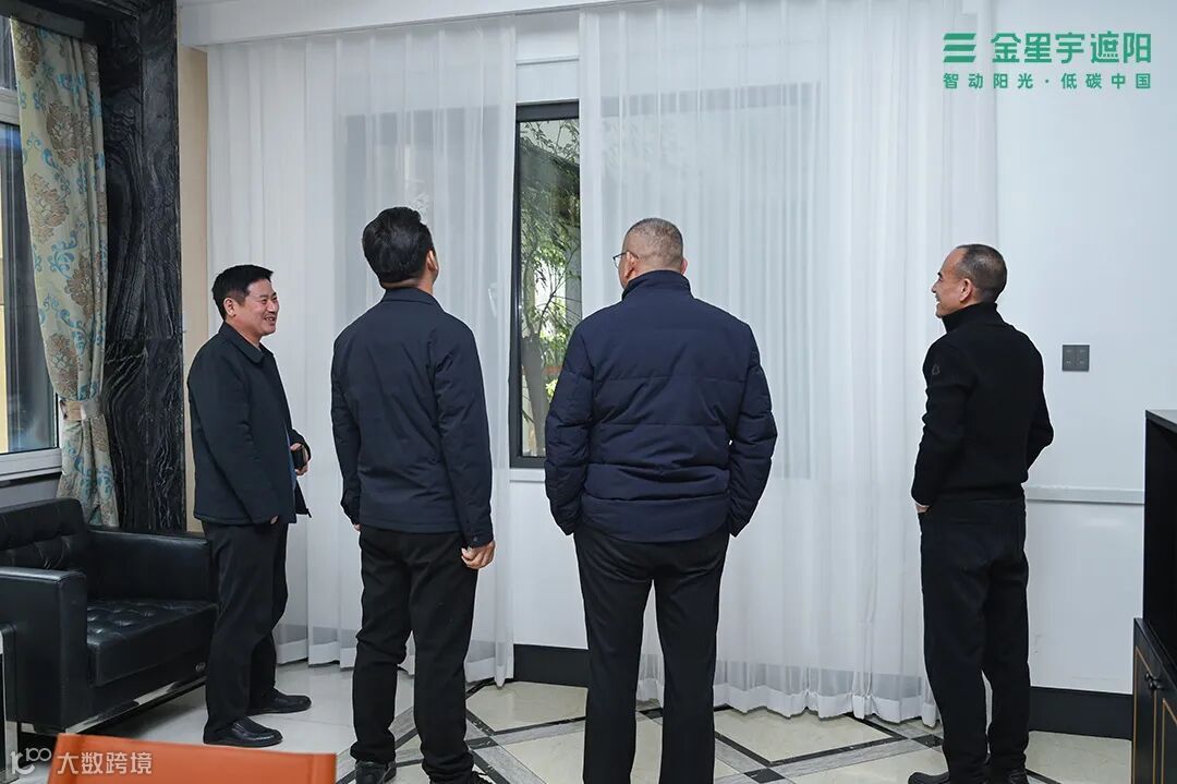 12月14日,山东省枣庄市住房和城乡建设局党组成员、市工程质量安全服务中心主任尹健国率队,携枣庄市工程质量安全服务中心副主任贺晓飞、装配式建筑科科长丁德波、工会主席孙碧茹,以及枣庄市勘察设计协会副会长王伟一行5人,莅临金星宇遮阳进行考察调研。金星宇遮阳董事长梁世格全程陪同,深入交流企业在产品研发、生产制造及实际应用中的创新成果与成功经验。