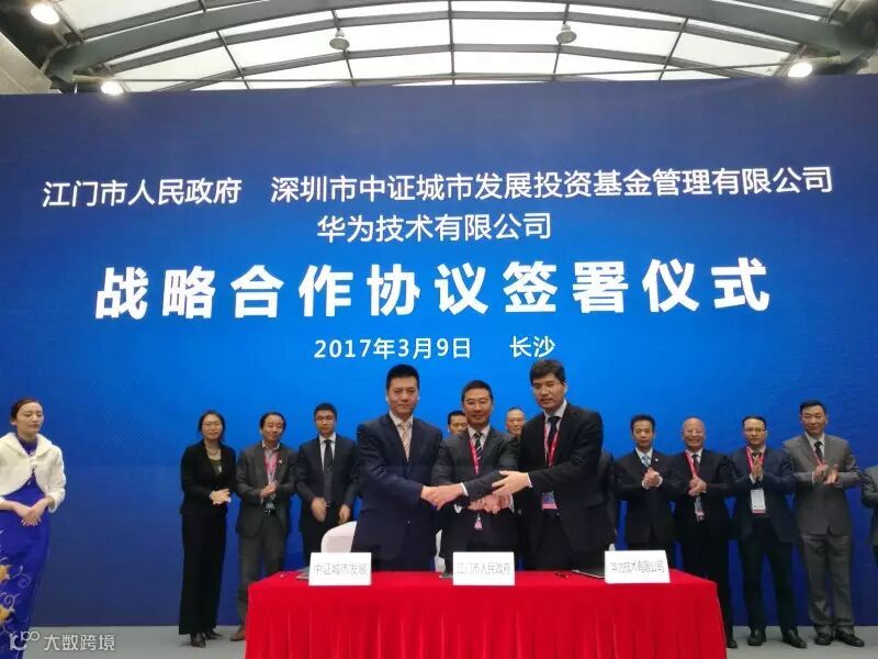 3月9日下午,江门市人民政府与华为技术有限公司、深圳市中证城市发展投资基金管理有限公司在华为(长沙)中国生态伙伴大会上签署三方合作框架协议,共同推动江门市智慧城市及大数据产业发展和建设,合作建设江门建设珠西信息枢纽城市。