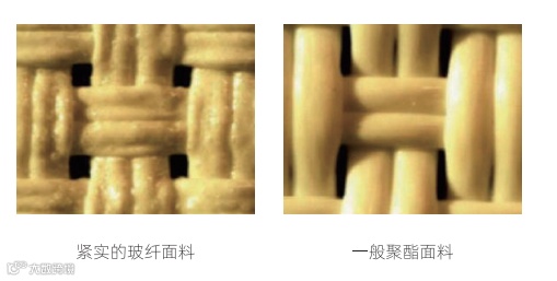 作为用于户外的面料,其具有绝佳的户外耐候性,高玻纤含量大大提高了面料的抗拉伸强度与抗断裂强度,相较一般的聚酯面料,拥有更优越的尺寸稳定性,且耐热性强、抗腐蚀性好,即使在大尺寸下面料也不易伸长或扭曲,能够长久保持完美的平整度,经受长年累月的日晒雨淋也不易变形。耐光色牢度8级,能长期保持出厂色泽,不易褪色。