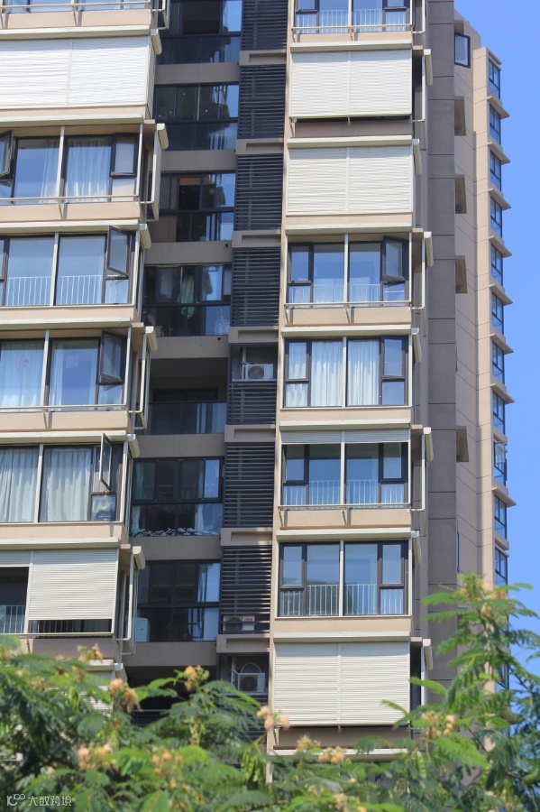外遮阳系统中较传统的为卷帘外遮阳系统,在夏天日照强烈的时候将卷帘放下,可以有效遮挡阳光。