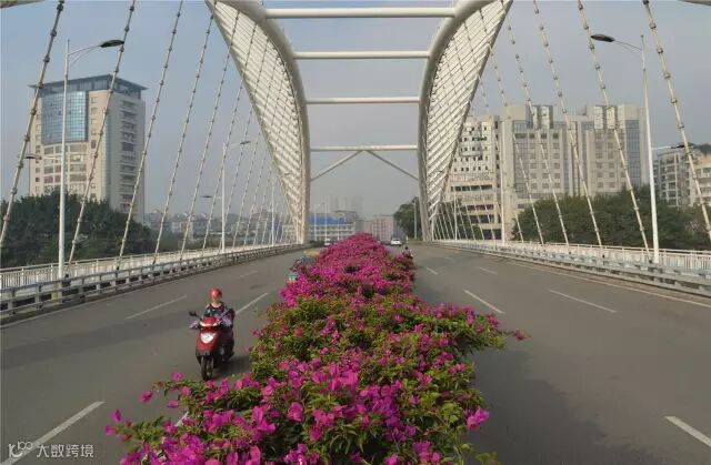 江门的绿化面积很高,就连桥边都是满满的美丽娇艳的勒杜鹃,更别那提道路两旁的茁壮大树了。