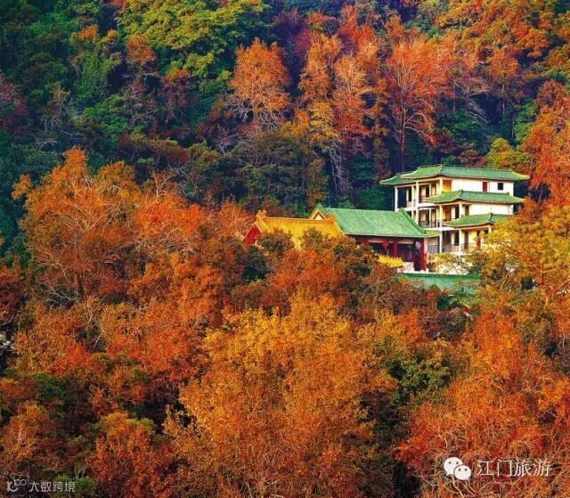 秋天,不必去香山,圭峰山的枫叶红似火,层林尽染。这片枫林是江门市区内最大面积的枫林,年代最为久远。