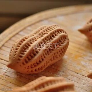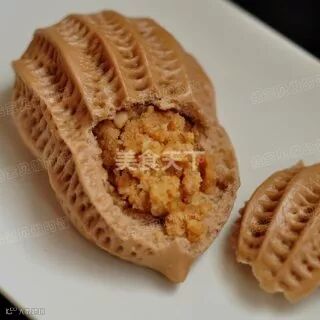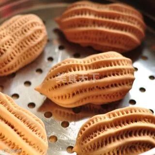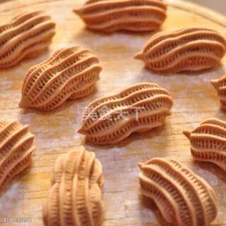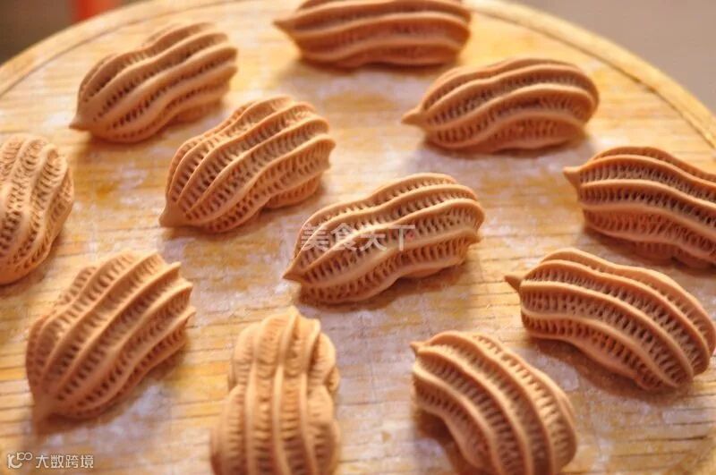 8、用面点花钳夹出花生的纹路。生坯就做好了。