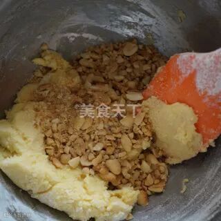 2、依个人口味加入适量白糖和少许盐,再加入融化的黄油或猪油拌匀。花生馅就做好了。