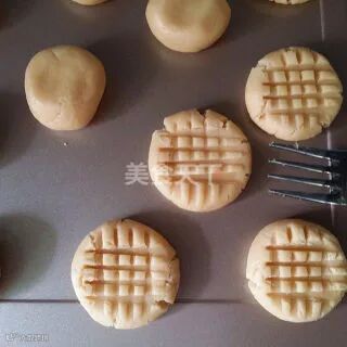 9、轻轻压扁后再用叉子横竖压成网格状。