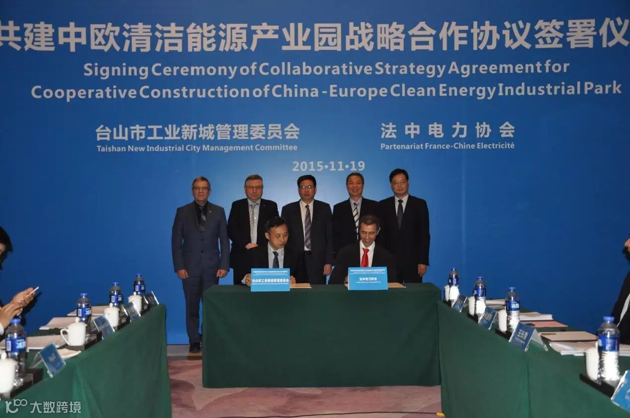 2015年11月19日上午,台山工业新城管委员会与法中电力协会签署战略合作协议,将共建中欧清洁能源(装备)产业园。今后,双方将围绕共建“中欧(江门)中小企业国际合作区”、打造“中欧清洁能源(装备)产业园”的目标,开展多方合作。