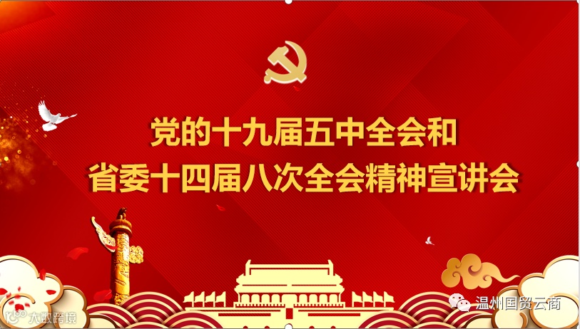 党总支委员、副总经理杨奇军围绕“深刻认识我国进入新发展阶段的重大意义、有利条件和重要特征”“准确把握2035年远景目标和‘十四五’时期我国发展的指导方针、主要目标、重点任务”“牢牢把握构建新发展格局的战略构想和重要着力”“坚持党的全面领导,动员各方面力量为实现‘十四五’规划和2035年远景目标而团结奋斗”“紧密联系实际,国贸云商下步打算”等五个方面,结合国贸云商工作实际,全面系统阐释了党的十九届五中全会和省委十四届八次全会精神。解读了《中共中央关于制定国民经济和社会发展第十四个五年规划和二〇三五年远景目标的建议》和《中共浙江省委关于制定浙江省国民经济和社会发展第十四个五年规划和二〇三五年远景目标的建议》。党总支委员、副总经理杨奇军对照文件精神,结合温州国贸云商的未来发展目标,强调指出: