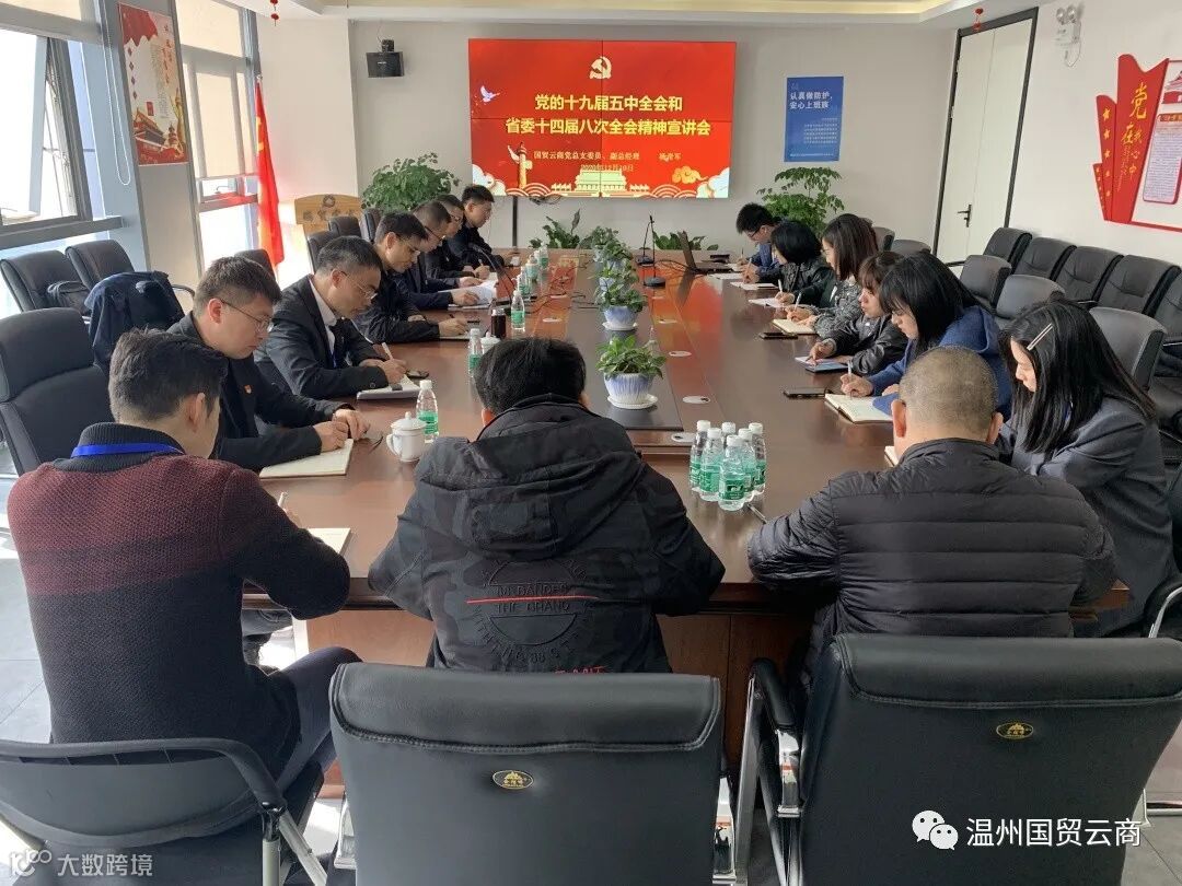 12月10日上午,浙江国贸云商党总支委员、副总经理杨奇军赴温州国贸云商宣讲党的十九届五中全会和省委十四届八次全会精神。温州国贸云商党支部书记、执行董事朱聃,总经理项光忠以及公司其他班子成员、中层干部、党员以及预备党员、入党积极分子等参加会议。