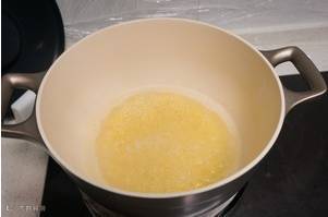 20分钟后揭开锅盖,往小米粥中加入适量糖,并开始搅动至粥变粘稠