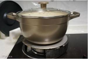 水烧开后加入小米,大火烧开后改小火炖煮20分钟左右