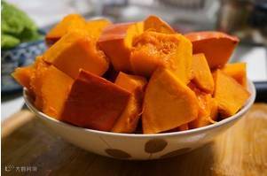 南瓜彻底洗干净后,带皮切块,然后蒸或煮至熟软