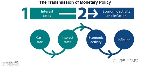 当 RBA 降低现金利率(收紧货币政策)时,经济中的其他利率将下降。支出受到刺激,企业将增加借贷,从而导致经济活动增加。这最终会导致更高的通货膨胀。抬升利率(收紧货币政策)将产生相反的效果。