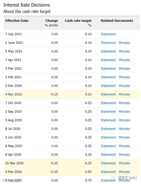 澳大利亚储备银行 (以下简称RBA) 董事会于 2021 年 7 月 6 日星期二举行会议决定货币政策。会议决定为澳大利亚经济继续提供支持。目标是实现低失业率并使通胀率保持在 2% 至 3% 的目标范围内。