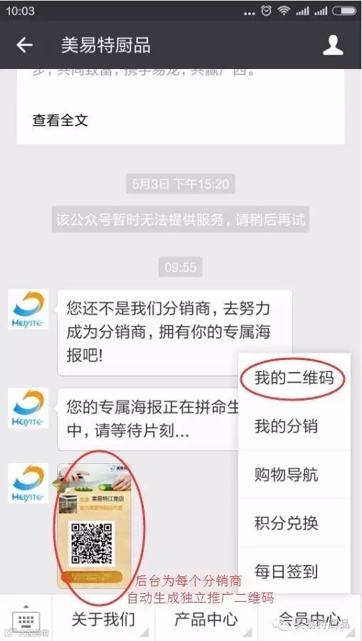 三,让微信朋友通过你的二维码关注《美易特厨品》公众帐号
