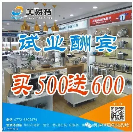 (一次性购满500元即可免费办VIP会员卡,仅限柳州美易特体验馆)