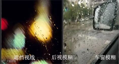 昨夜暴雨,起床都晚了,匆匆出门,还在下雨,车玻璃快速出现了以下现象