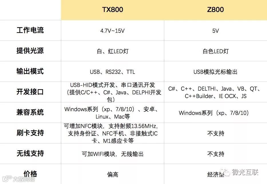 可以看出,TX800的输出方式和可以兼容的系统更多,可以增加NFC模块和WIFI模块,可以应用的场景更多一些,因此价格更高一些;而Z800则在输出方式、兼容系统和附加模块等方面有一些局限性,价格上更亲民一些。