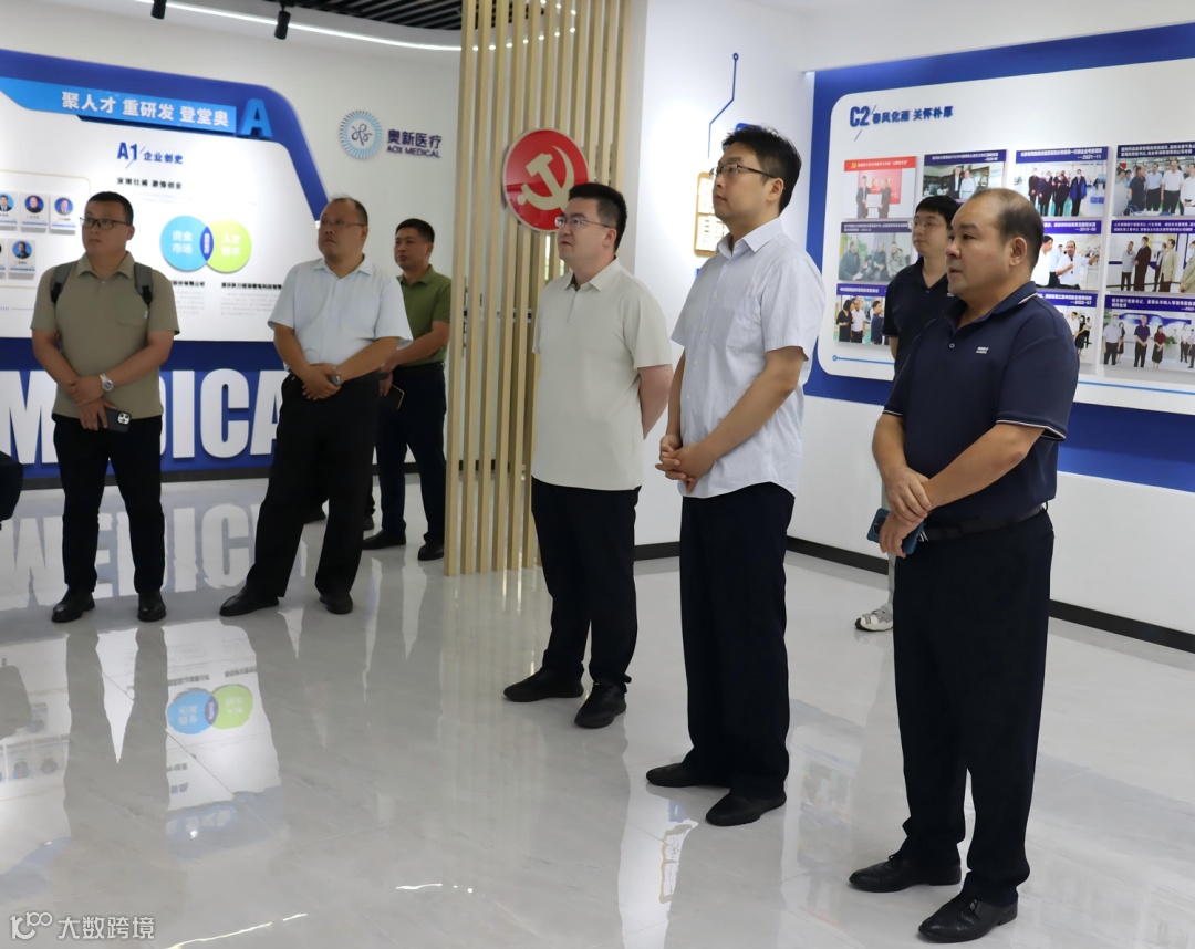 9 月 3 日上午,安徽省东超科技有限公司总经理张皓率核心团队到访奥新医疗,双方围绕高端医学影像装备领域创新发展、数字化技术融合应用、无介质空中悬浮成像等关键议题进行洽谈。潍坊市投资促进局科长张志鹏,高新区党工委委员、投资合作局党委书记、局长韩滨,高新区投资合作局党委委员、副局长邢中华,高新区投资合作局科长马成刚陪同参观交流。奥新医疗总经理李培勇、研发副总刘宇热情接待。