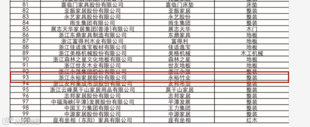入围名单的企业,分别有:TATA木门、志邦家居、欧派家居、圣象家居、永裕家居、久盛地板、生活家地板、莫干山家居、世友地板、大自然家居、尚品宅配、北美枫情、乐迈石晶、书香门地、图森、三棵树、嘉宝莉、神州北极、福人集团、创意玩家、座有坐相、富林家居、富得利、德尔未来、曲美家居、梦天家居、霍尔茨木门、3D家居、帝欧家居、浙江永强、平潭发展、易尚展示、亚振家居、恒林股份、全友家居、丰林集团、喜临门床垫、吉林森工、美格机械、实德地板、佳适逸宝、菲林格尔、东鼎家具、友邦吊顶、露水河板材、鹏鸿木业、慕思床垫、马可波罗瓷砖、梦百合、梦洁家纺、皮阿诺、南洋木业、森林之星、邦迪木业、比嘉地板、乐得仕软木、桃花江、品桥木门、诚品科技、锦兰之家、东鹏瓷砖、永艺股份、中源家居、沃施股份、索菲亚、奥普、三威、兔宝宝家居、永安林业、顾家家居、耀东华装饰、新标、东易日盛、爱依瑞斯、斯可馨家居、冠特、简一、金牌橱柜、福建金森、我乐家居、美克家居、苏福马、博亿森、好莱客、诗尼曼、艾依格、王力集团、美步楼梯、威迈壁纸、尚品本色、鑫迪家居、完整家居、大王椰集团、华鹤集团、雨生集团、客来福、重庆星星、润成创展、康达木业、展志天华等。