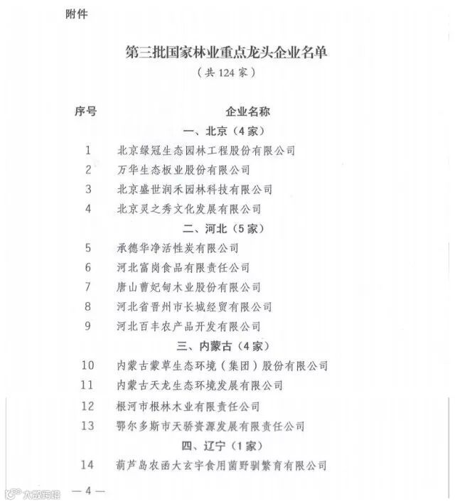 经过省级林业主管部门推荐、初审、专家评审、公示等环节,通过专家组针对企业规模、带动能力、竞争能力、社会诚信、持续经营能力、资源环保等八大类26个指标的严格评审,国家林业局最后认定了124家省级林业龙头企业为第三批国家林业重点龙头企业。