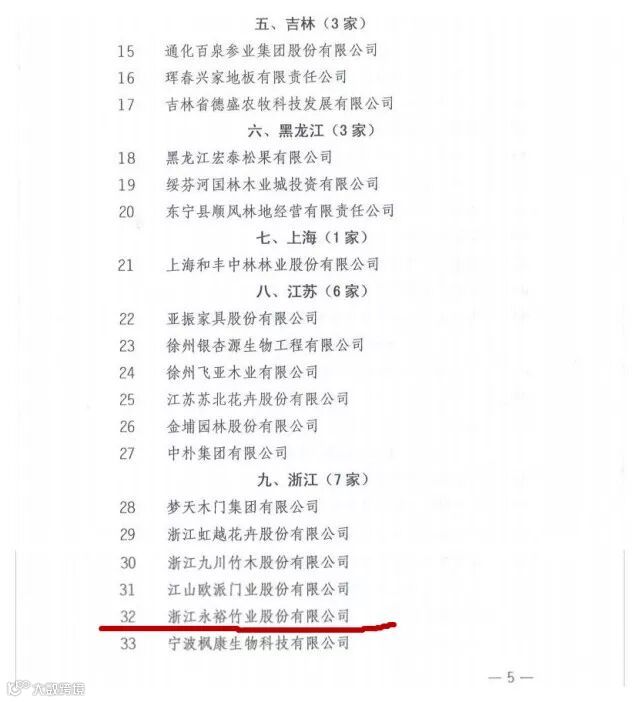 喜讯:浙江永裕竹业股份有限公司入选第三批国家林业重点龙头企业