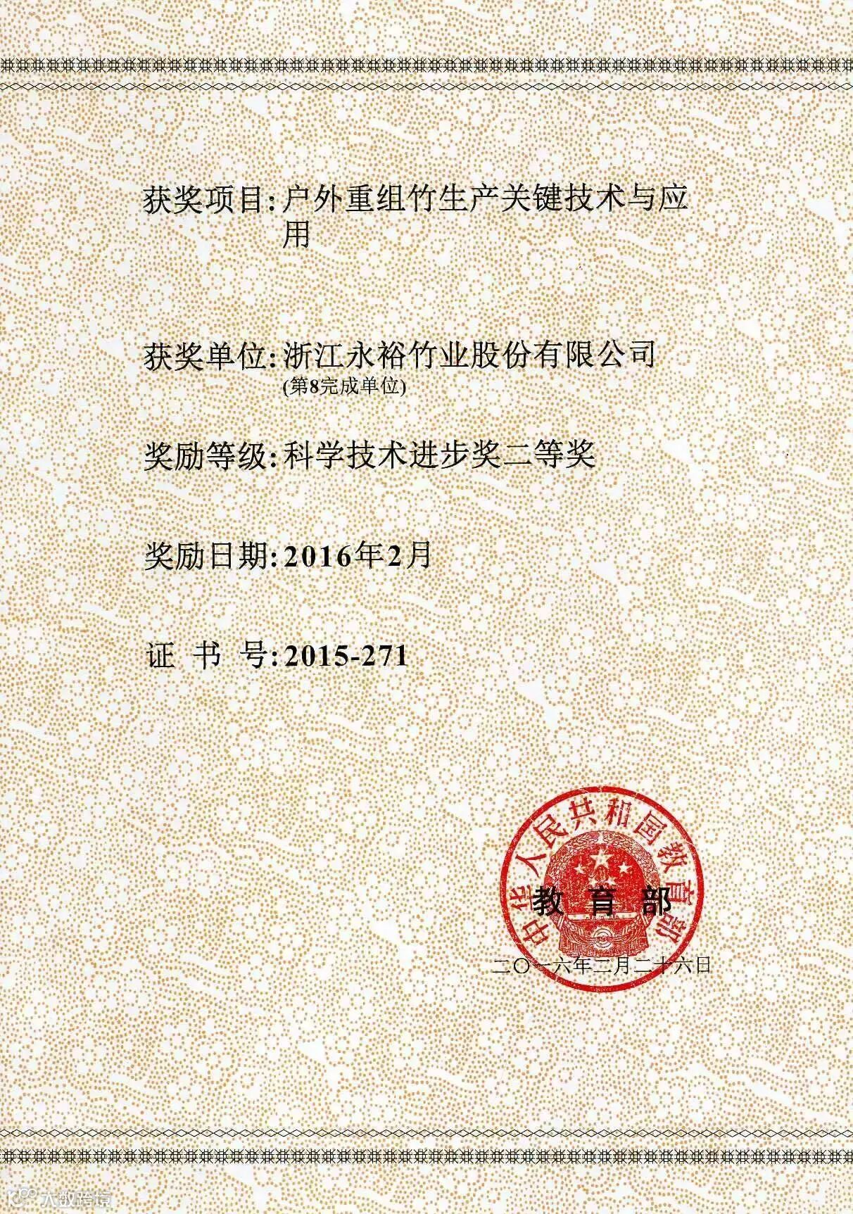 永裕竹业重视科研与生产实际的有机结合,与南林大等院校保持密切合作,不断创新产品,拓展竹材的应用领域。竹户外材料系列产品在浙江、福建、北京、上海等18个省推广应用,并出口到美国、欧洲等多个国家。该项目的成功实施推动了我国竹产业转型升级,对节约森林资源、促进林农增收、提高企业效益发挥了重大作用。