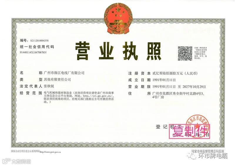 在1991年诞生一家以“珠江”字号冠名的电线电缆生产企业“广州市珠江电线厂有限公司”,至今已成为华南地区家喻户晓的知名电线电缆品牌,悠久的老字号“珠江”品牌在行业内有口皆碑,在广大用户心中“珠江”二字就是好品质的代名词,广州市珠江电线厂有限公司2007年启用新商标“环市”,最早冠以“珠江”字号扎根珠三角地区三十余载,逐渐辐射到广东省周边省份,成为以广东为首,逐渐辐射向全国各地的知名品牌;同时也是较早进入国家电网公司、南方电网公司的采购供应商系统的品牌。
